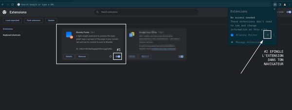 - va dans les extensions de ton navigateur : tu peux taper ceci dans la barre d’adresse/url pour y arriver au choix en fonction de ton navigateur : chrome://extensions vivaldi://extensions edge://extensions