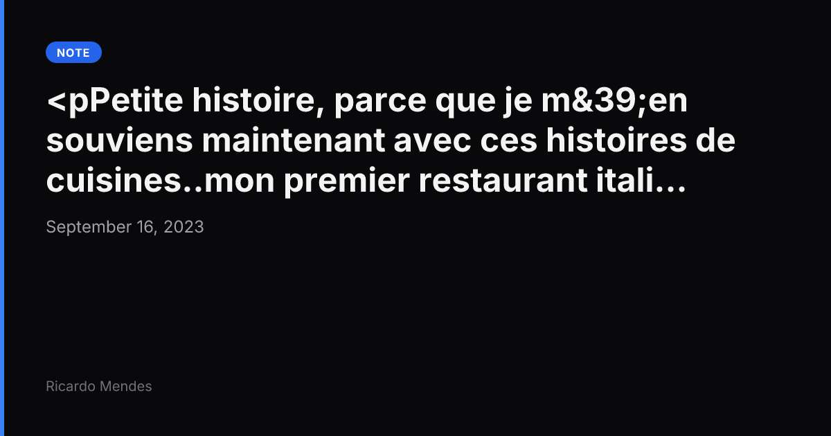 Petite histoire, parce que je m'en souviens maintenant avec ces histoires de cuisines..mon premier restaurant italien.
