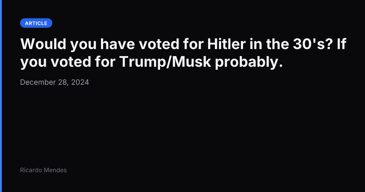 Auriez-vous voté pour Hitler dans les années 30? Probablement si vous êtes prêt à voter pour Trump/Musk, Orban, LePen, AfD