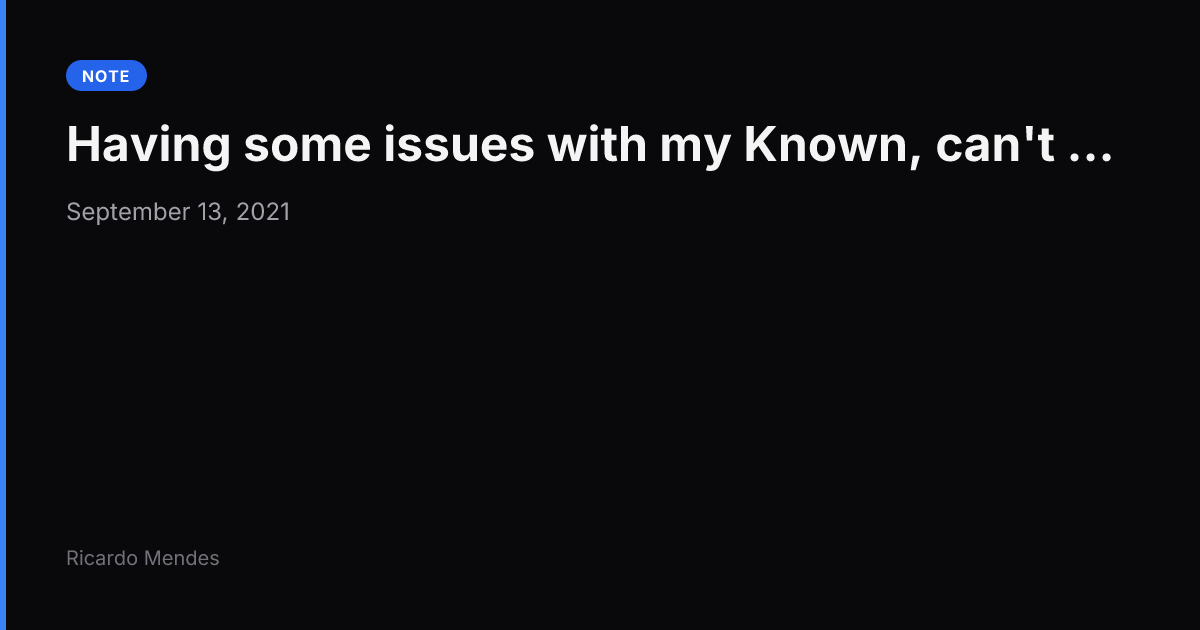 Still trying to understand what happened but ... 13 September 2021 Still trying to understand what happened but my blog time traveled back in time, I lost one month of publications #wtf Still trying to understand what happened but my blog time traveled back in time, I lost one month of publications #wtf Permalink Ricardo Mendes