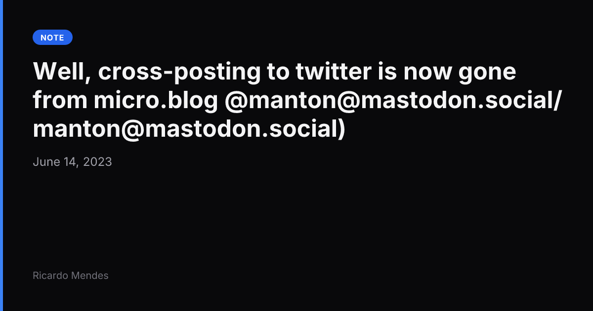14 June 2023 tech Hmmm Twitter a encore tué une partie de l’écosystème développeur, toute une série d’application sont morte ces derniers jours. Hmmm Twitter a encore tué une partie de l’écosystème développeur, toute une série d’application sont morte ces derniers jours. Permalink Ricardo Mendes