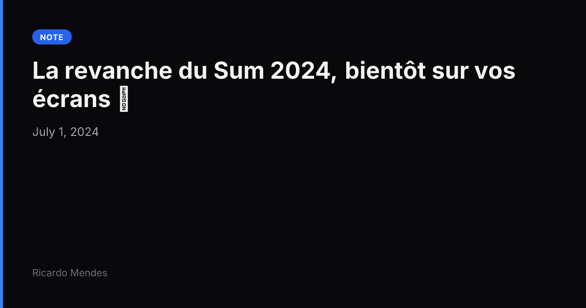 1 July 2024 thoughts C’était donc bien la revanche du Sum 2024 part 2 C’était donc bien la revanche du Sum 2024 part 2 Permalink Ricardo Mendes