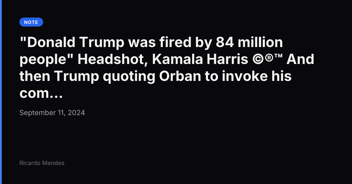 11 September 2024 politics “So…just to be clear, you don’t have a plan” #obamacare ABC debate moderator slingshot 😅 “So…just to be clear, you don’t have a plan” #obamacare ABC debate moderator slingshot 😅 Permalink Ricardo Mendes